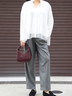 ×ピンストライプイージーパンツ(グレー)