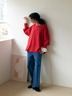 スタイリングのポイントになるレッドの